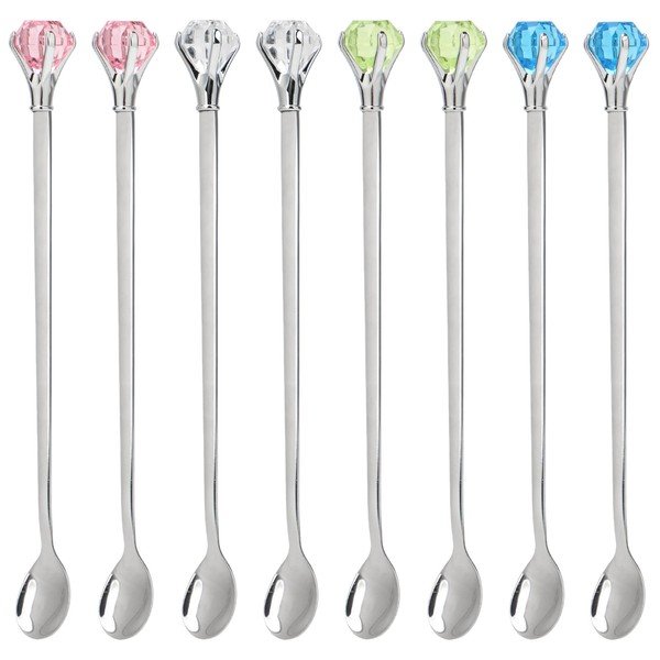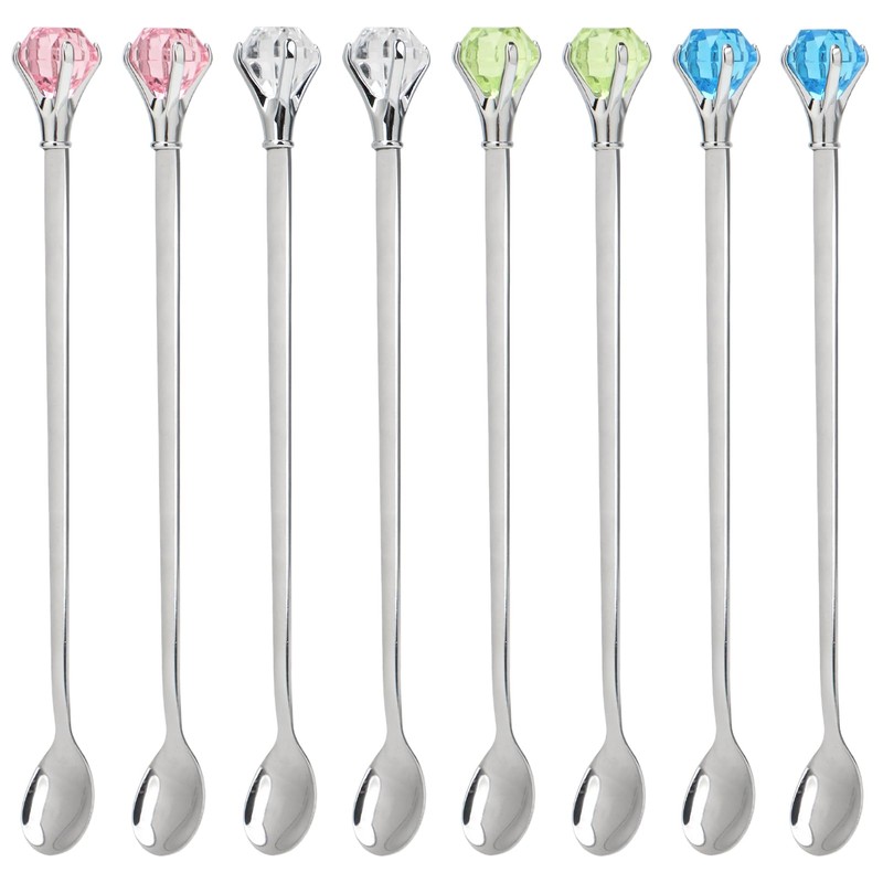 kilofly Rhinestone Party Bar Spoon is designed for simplicity, elegance, and durability. The slim profile of the bar spoon displaces less ice in a full glass, and is easy to insert around the ice, unlike some cumbersome models with over-sized bowls and awkward angles. The spoon is also great for a lot of non-cocktail purposes; think of iced tea and lemonade, coffee drinks and french presses, or stirring anything with style and class. This value pack comes with 4 bar spoons of colors as shown in images.