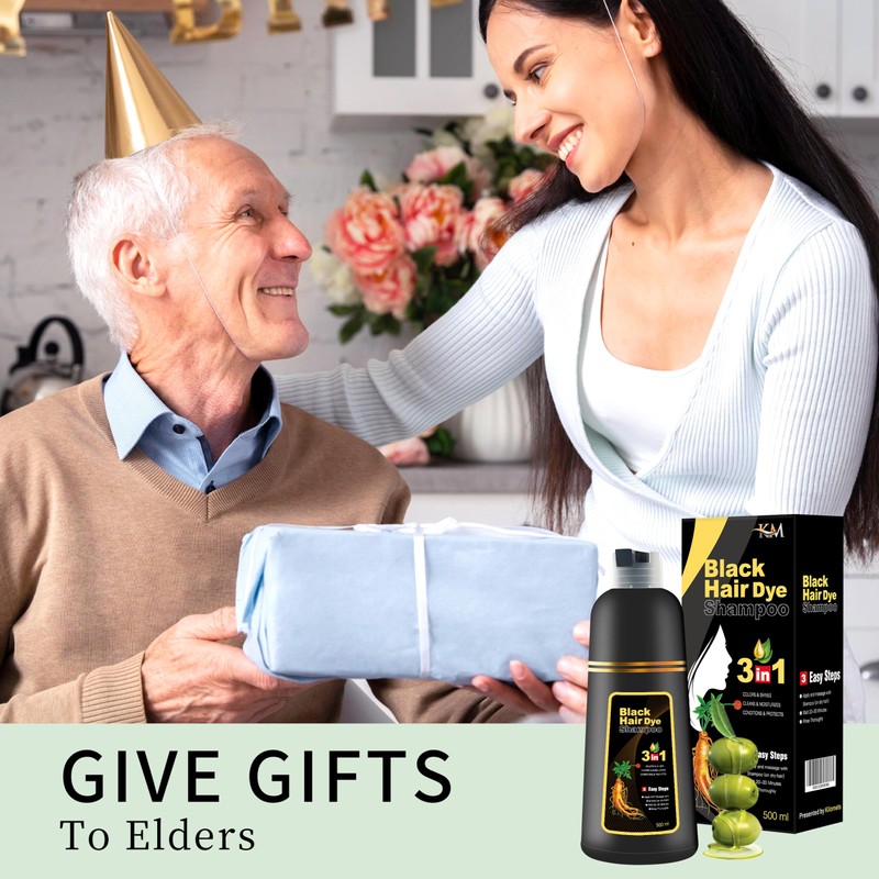 KILOMETS Champú para teñir el cabello negro: Champú Mágico de color para el cabello de mujeres - Cubre el 100% de las canas- Tinte 3 en 1 instantáneo. Con ingredientes herbales, fácil de usar, sin ensuciar, larga duración, libre de PPD y amoníaco. 500 ml