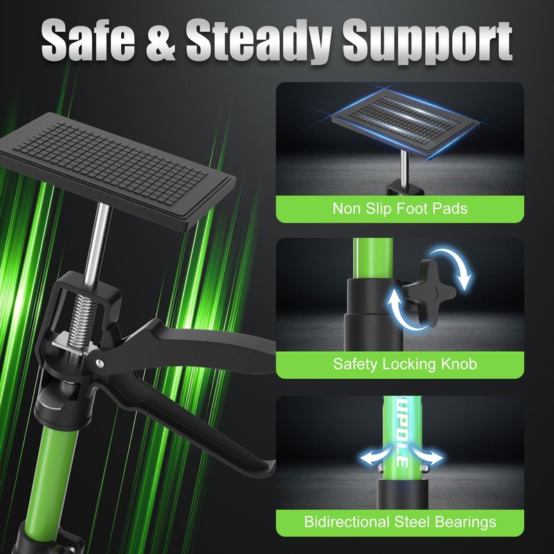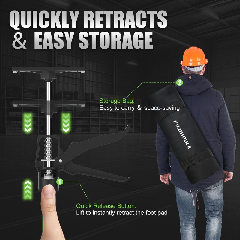 • The Third Hand Every DIYer Needs: Why call in a helping hand when you’ve got your own? The KILOUPOLE Cabinet Jacks holds heavy materials in place, even in tricky spots, so you can work uninterrupted. Simply adjust the height, lock it in, and the pole will keep your project steady, giving you one less thing to worry about while you work