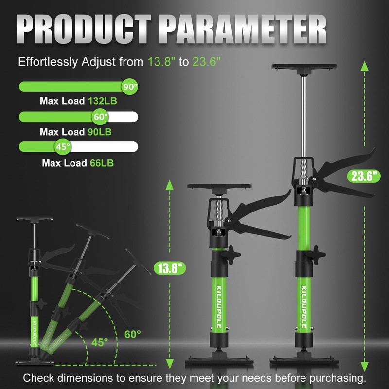 • Your Reliable Renovation Helper: Tackling a renovation? Meet the KILOUPOLE Adjustable Support Pole—your new best friend. With an adjustable range of 13.8 - 23.6 inches, it’s perfect for cabinet installation, lifting drywall, positioning sinks, door parallel, etc