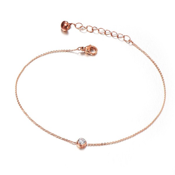 Kim Johanson Stainless Steel Women's Anklet White Diamond in Rose Gold with Zirconia Stones and a Strong Lobster Clasp Including Jewellery Bag, Zirconia