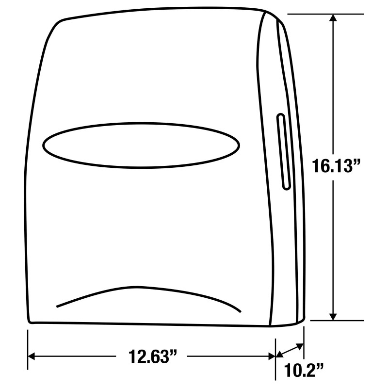 Reduce the hassle of restroom maintenance with the high-capacity Kimberly Clark Automatic Towel Dispenser. This touchless, wall mount roll towel dispenser needs infrequent refilling and provides consistent, reliable performance. Your washroom guests will enjoy the benefits of hygienic, touch free dispensing – they’ll only touch the towel they’re using. You can choose how it dispenses – either a hidden towel that advances only when the sensor is activated (for sensitive environments) or an exposed towel for grab-and-go convenience. The electronic dispenser’s sensor is placed in a natural location, so your guests won’t need to wave their hands to dispense a towel. With four included D-cell batteries to power up, the electric dispenser is quieter than enMotion and has a feature that allows you adjust the length of towel dispensed from the roll. This comes in handy to reduce waste, particularly for a high-traffic business restroom.