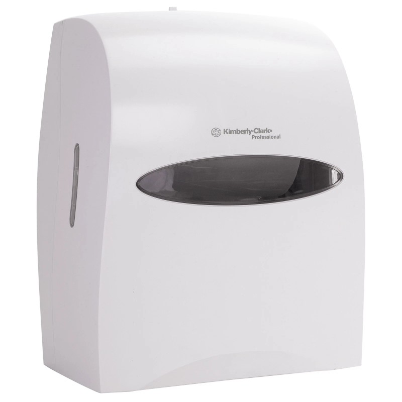 - Kimberly Clark Automatic Towel Dispenser (in white) gives your washroom visitors hygienic, hands-free dispensing. Theyll only touch the towel they use, which helps reduce contamination