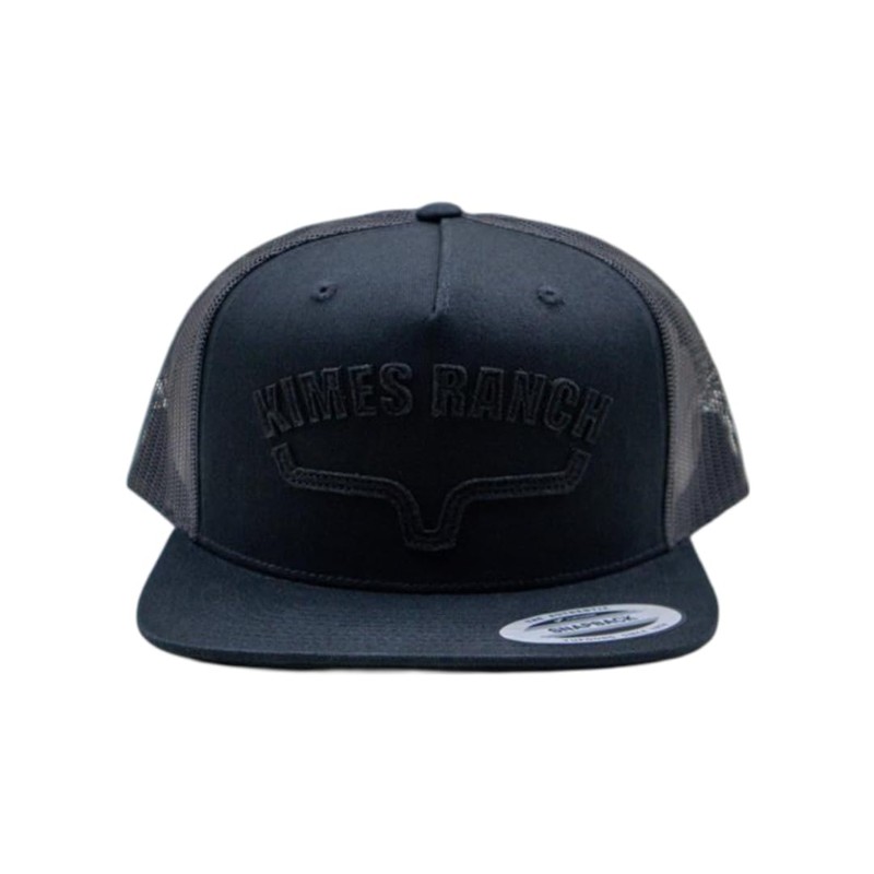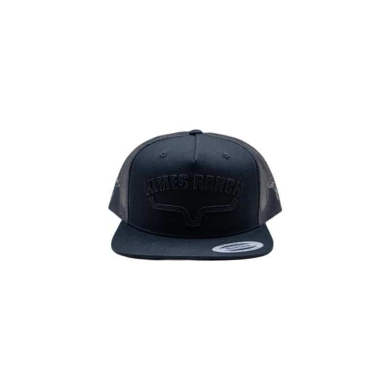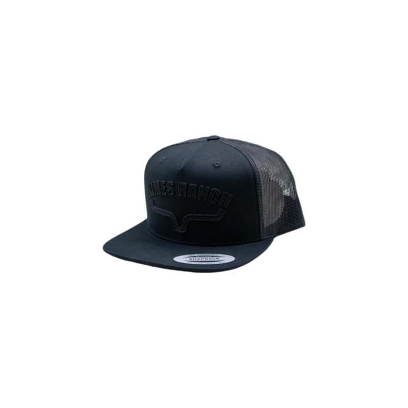 Kimes Ranch Caps Adjustable Snapback Flatlands Trucker Hat, Black/Black, One Size