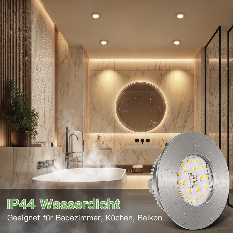 - 【IP44 Wasserdicht】Die 6er Einbaustrahler ist wasserdicht, spritzwassergeschützt und beschlagfrei und eignet sich daher hervorragend für feuchte Umgebungen wie Badezimmer.