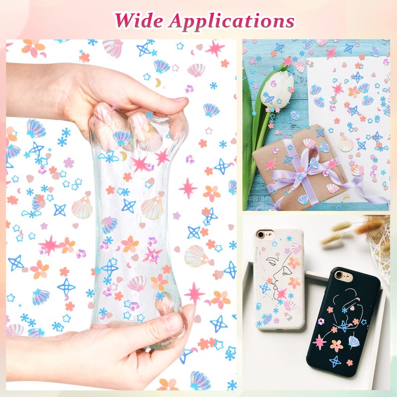 - Ideal Embellishment: You can use your imagination and creativity to apply the multicolored sequins wherever you find it interesting,such as scrapbooking,crafts making,slime charms,DIY project works,Christmas ball decoration,nail art,mobile phone decoration,body and face makeup,jewellery making.
