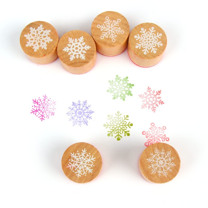 - Package Includes: 6pcs different style round wood stamps which has unique pattern of snowflake(does not include ink pad)