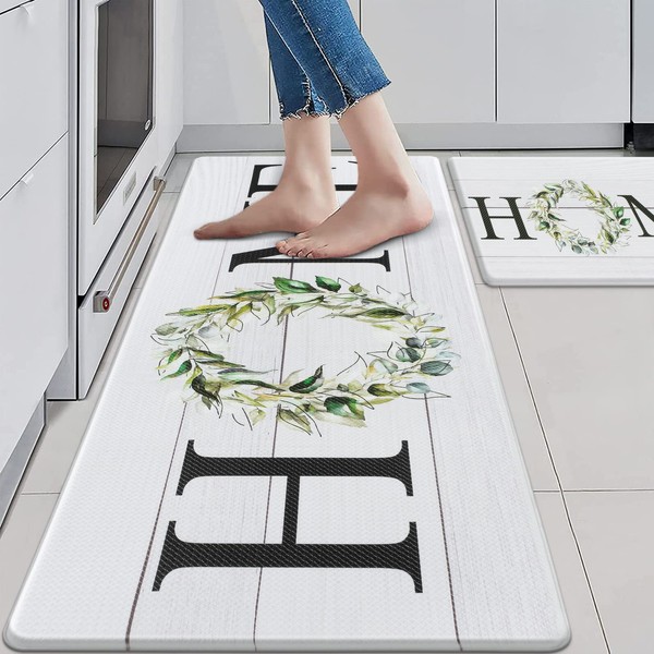 - Comfort Anti-fatigue Kitchen Mats:0.47inch (12mm) extra thick anti fatigue farmhouse Home kitchen sink mat are sure to provide cushion on your feet, knees, lower back, and joints for standing.Feel comfortable like walking on a firm but soft cloud when you are cooking in kitchen or working at your standing desk.