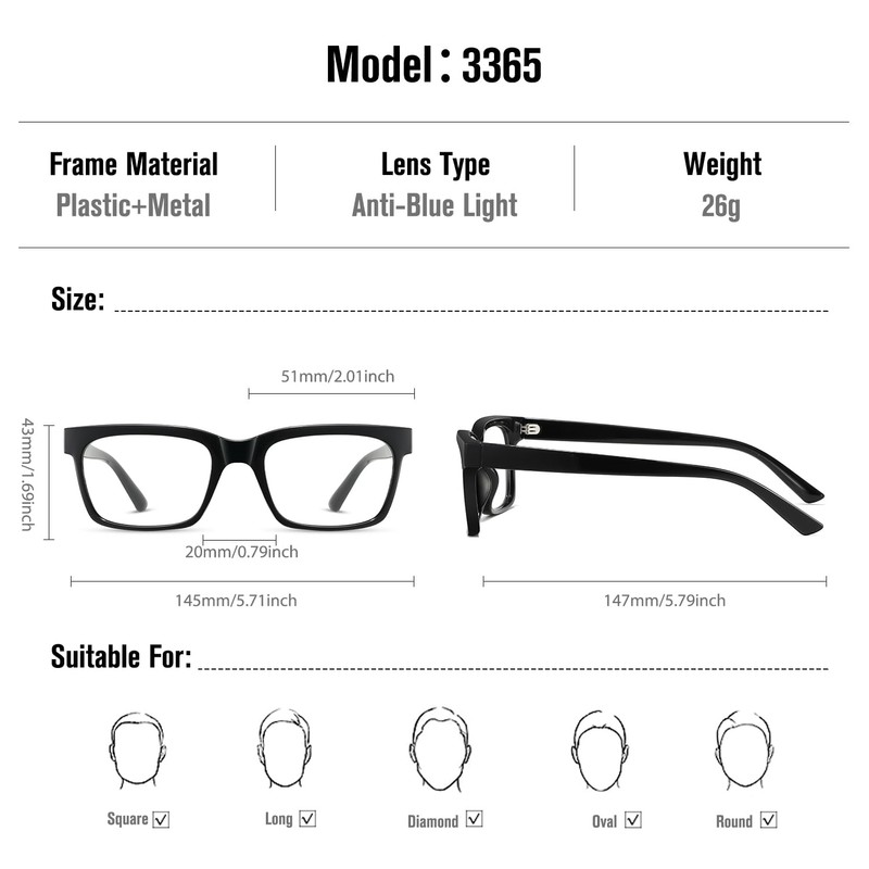 - Blue Light Blocking: Specially designed to block harmful blue light from computers, smartphones, and other digital screens, reducing eye strain and improving visual comfort during extended use.