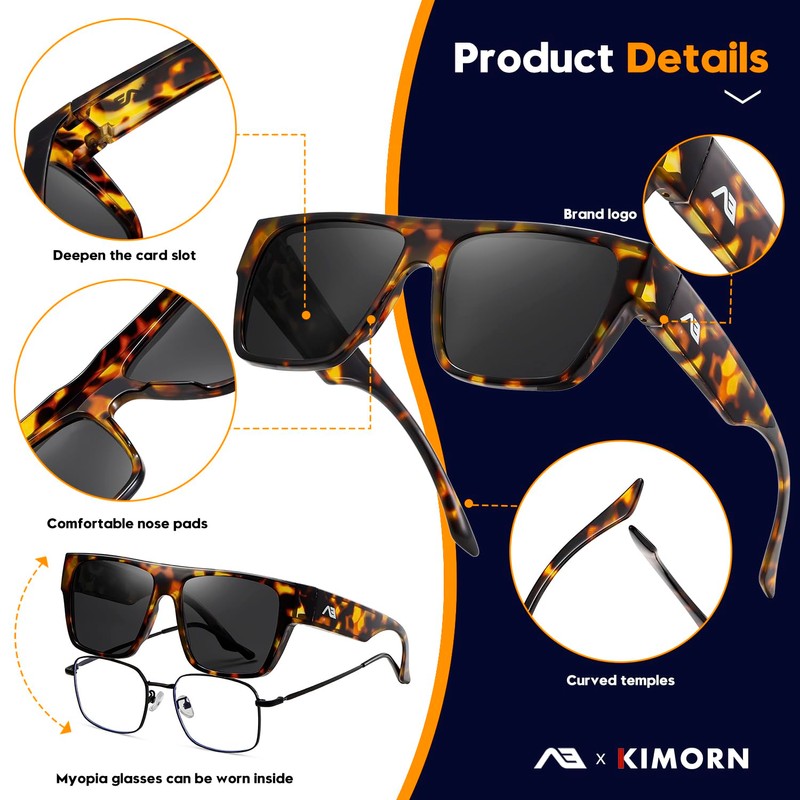 • SUNGLASSES FIT OVER GLASSES: Specifically crafted for glasses wearers, these polarized sunglasses boast a large frame and wide temples,enough to cover your glasses well. Suitable for people who wear glasses or with normal vision can also wear them alone.
