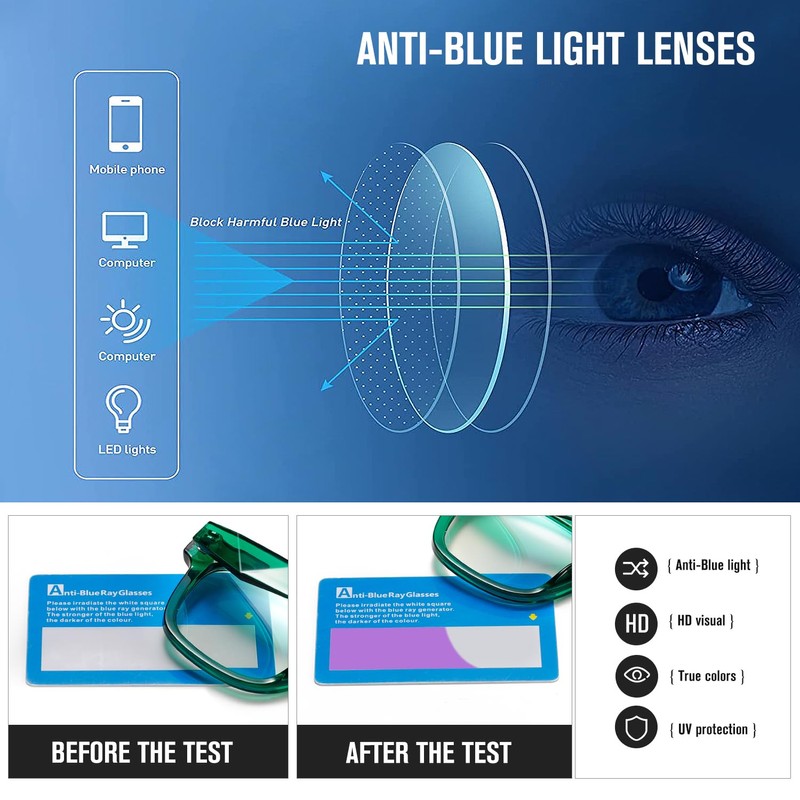- Blue Light Blocking: Specially designed to block harmful blue light from computers, smartphones, and other digital screens, reducing eye strain and improving visual comfort during extended use.