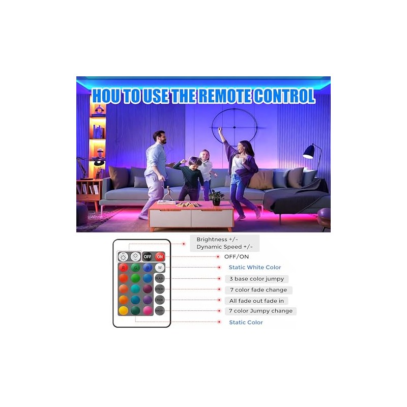 - Speicherfunktion: Der LED streifen verfgt ber einen eingebauten Speicherchip, der die letzte Moduseinstellung speichern kann, und Sie mssen den Modus nicht jeden Tag zurcksetzen. Sie k?nnen die Farbe und den Szenenmodus w?hlen, die Helligkeit und die Geschwindigkeit einstellen mit Fernbedienung, machen Sie Ihr Zuhause bunt und genie?en Sie das Smart Home Leben.