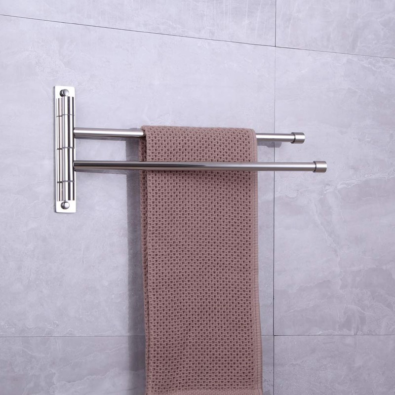 - 2 ARM SWING & 180 DEGREE ROTATATION - This swivel towel rack features 2 swing arms that can rotate 180 degrees freely to avoid wet and dry towels touching together, ensures air go-through and dry faster. Rubber gasket joint design to avoid wear and noise when using. The end of the rod prevents towels from falling.