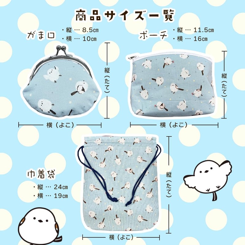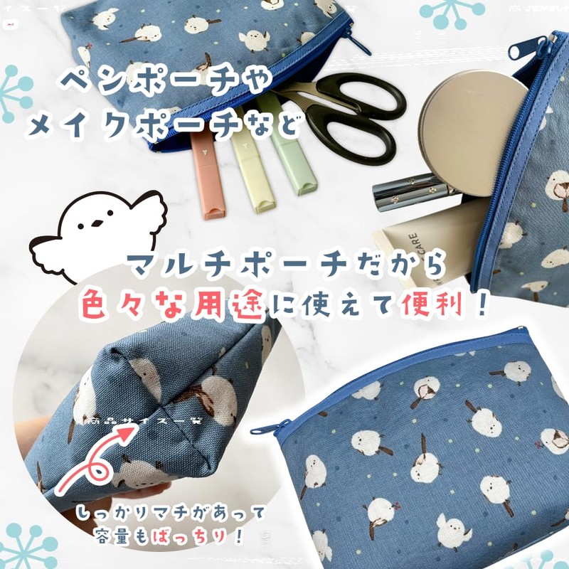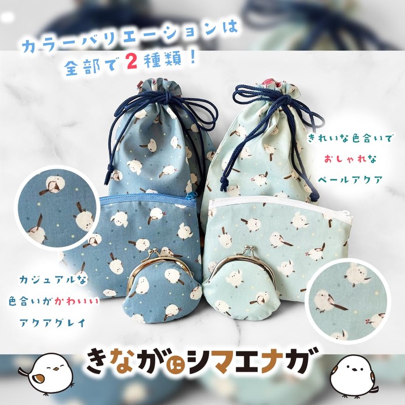 Kinagani Shimaenaga Pouch, Drawstring Set, Cute, Gift, Present, Makeup, Small Item, Multi-Pouch, Goshuin Book, blue