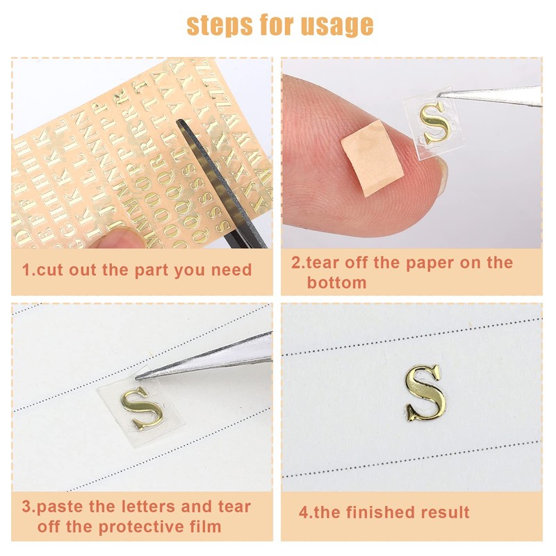- Easy to Use: Firstly, cut out the alphabets and numbers you need; then, use your fingernail or tweezers to pick up the alphabets and numbers as well as the front protective film; next, use tweezers to stick them on where you need; lastly, remove the front protective film, done. Please clean the place you want to paste before use, which ensures longer using time.