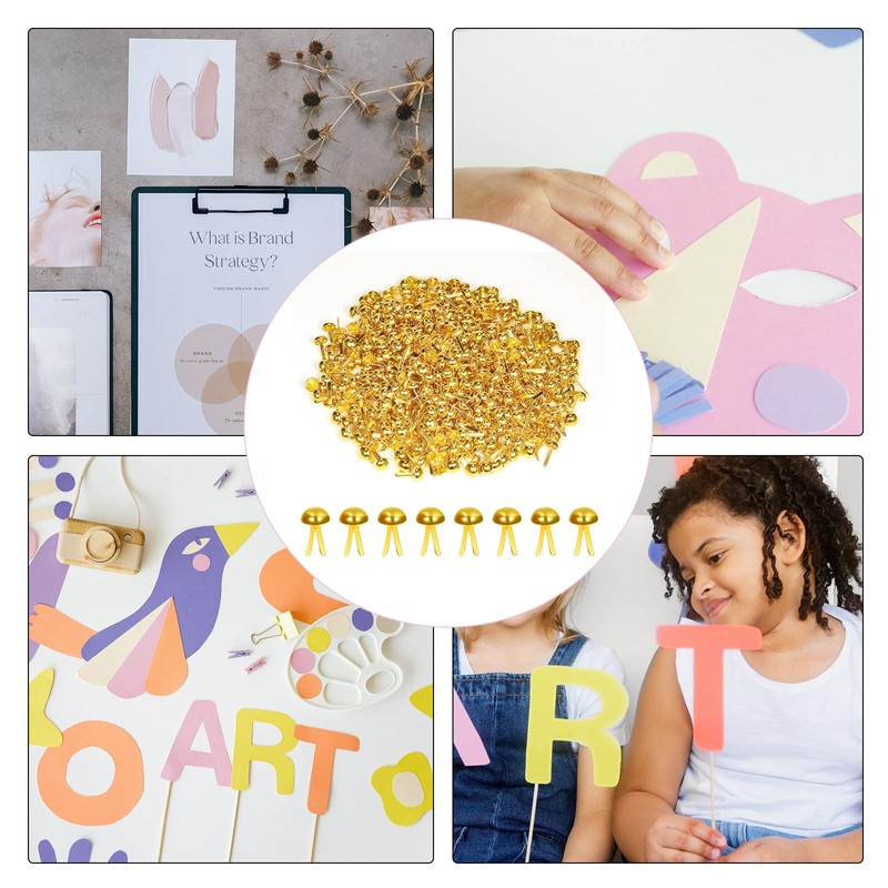 KINBOM 600pcs 8 x15mm Paper Fasteners Brads, Gold Round Head Brads Split Pins for DIY Paper Crafts Scrapbooking (Gold)