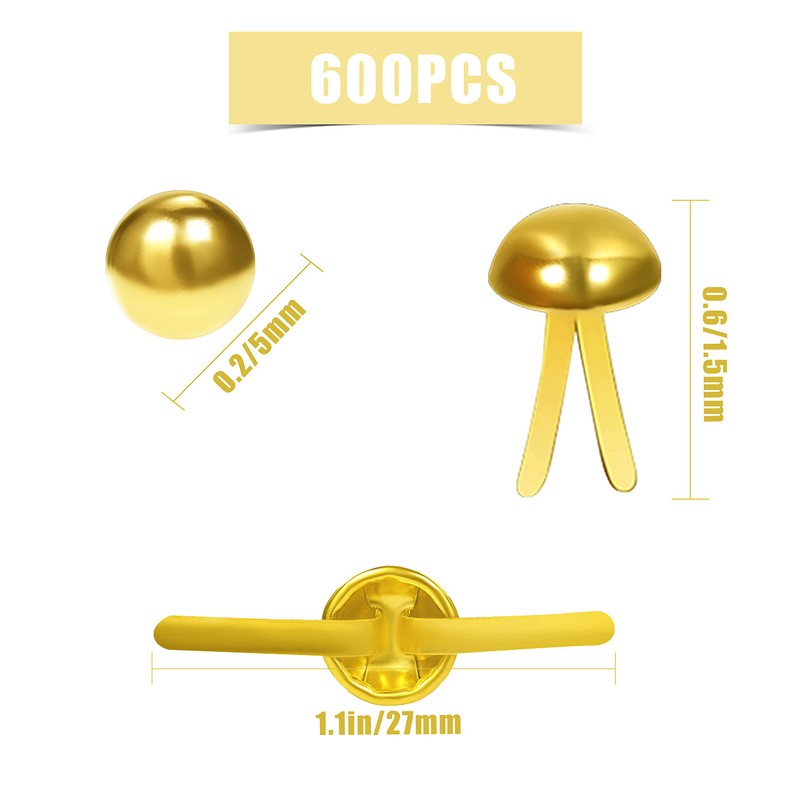 - [Package Content]: You will receive 600pcs gold paper fasteners,15mm/ 0.6inch in length, 8mm/0.3inch of round head in diameter. Comes with white storage box to organize.