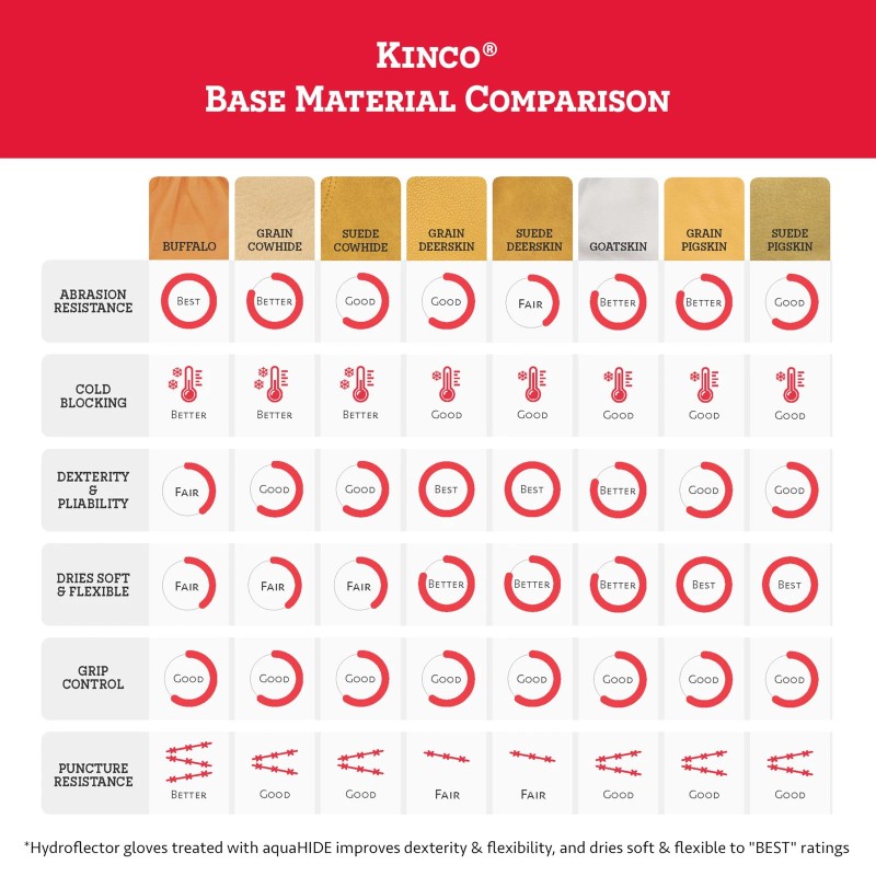 • TRUSTED BY OUTDOOR PROFESSIONALS FOR HARSH WINTER ACTIVITIES: Ski patrollers, snow plow drivers, loggers, and backcountry expeditioners alike choose Kinco 901s for their heavy duty durability and affordability. Premium grain pigskin leather is more durable than regular cowhide and will outlast synthetic or nylon work gloves. Suede pigskin reinforcement patches reinforce the high-wear areas of the glove to better withstand punctures and abrasions while extending the longevity of the glove.