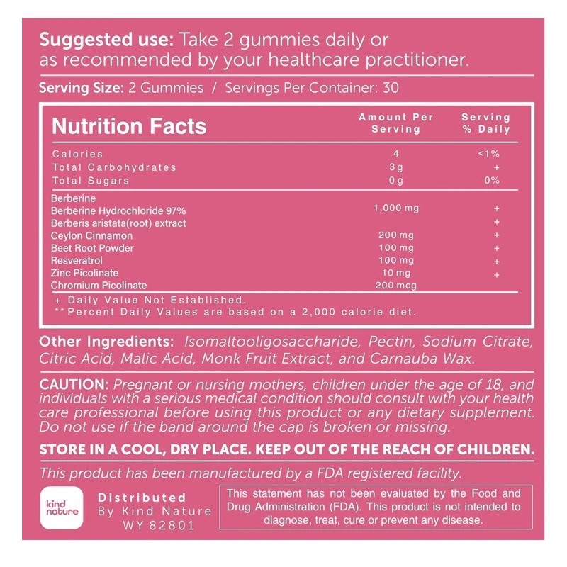 Powered by Nature – With Berberine HCI from Berberis Aristata, Ceylon Cinnamon & Beet Root Powder, Kind Nature berberine gummies pack a powerful punch full of antioxidants from nature