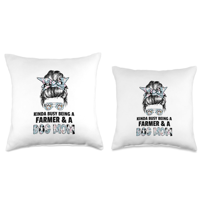 Kinda Busy Being A Farmer And A Dog Mom Agriculture Farm Throw Pillow