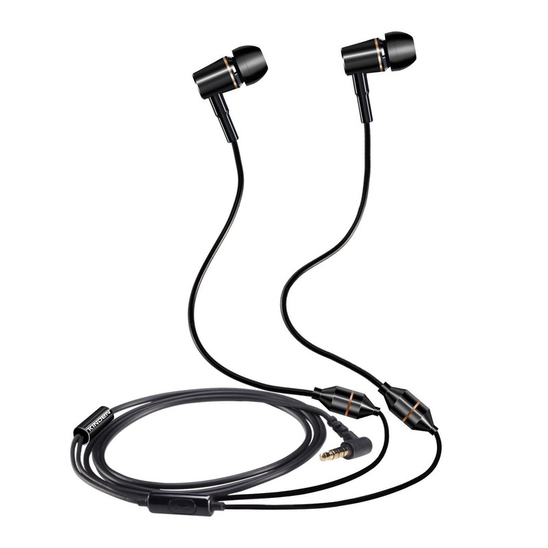 KINDEN Anti-Radiation Headphones Air Tube Headset Radiation Free Earbuds with Microphone Binaural Acoustic Stereo Alumium Metal Housing Wired in-Ear Handsfree (Black)