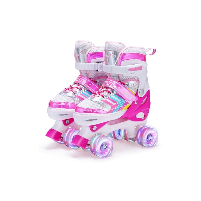 Kinder Rollschuhe für Mädchen Jungen Verstellbare, 8 Light Up Räder Quad Skates für Mädchen Jungen Kleinkind Anfänger Innen und Outdoor (Rosa, S (EU28-32))