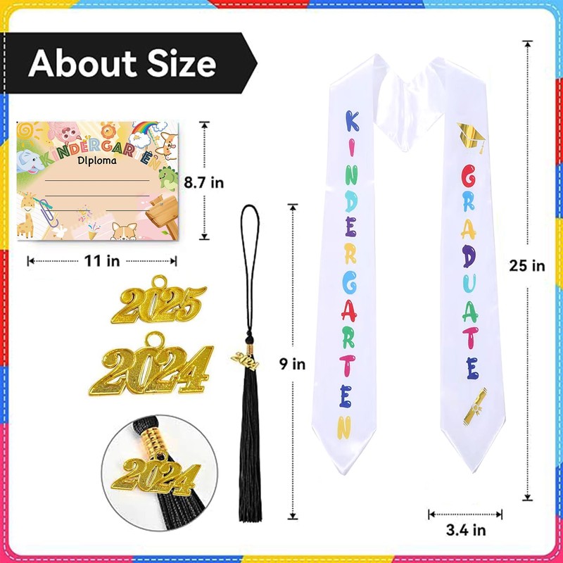 - 【2025 Kindergarten Graduation Gown Set】: including :1 *preschool graduation gown, 1 *graduation stole, 1 * graduation hat with 2025 tassel ,1 *graduation certificate, It is a complete children's kindergarten graduation set, a thoughtful combination to make your child's graduation ceremony memorable and meaningful