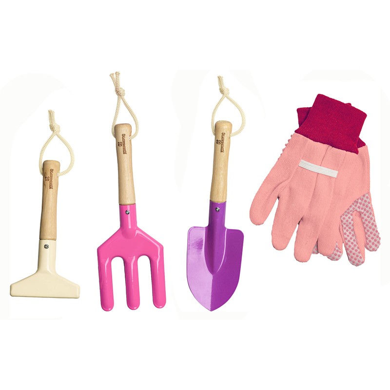 Gardening Set, Tool Kit, for Kids, STEM, Includes Tote Bag, Spade, Watering Can, Rake, Fork, Trowel and Gloves (Princess Pink)