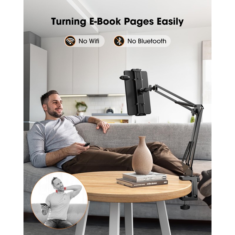 Kindle Holder with Remote Page Turner for Reading in Bed, Clicker Page Turner and Stand for Kindle Accessories Paperwhite, Tablet Stand with Lazy Arm for Desk Bed Hand-Free Reading, Gifts for Readers