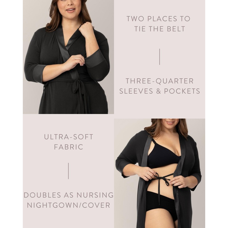 Kindred Bravely Emmaline Maternity & Nursing Robe for Hospital Bag, Labor & Delivery (Black, 1X/2X)