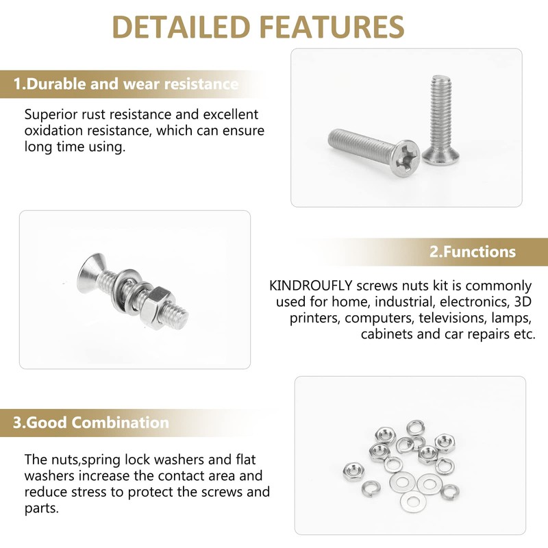 Why Choose Kindroufly Stainless Phillips Countersunk Head Machine Screws Nuts Washers Kit: