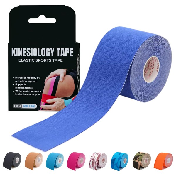 Kinesiology Tape 5CM*5M, Cotton Elastic Athletic Tape Uncut, JOMWEN Latex Free, Water Resistant Rock Tape KT Tape for Muscles, Physical Therapy,Stays on for Several Days (Dark Blue)