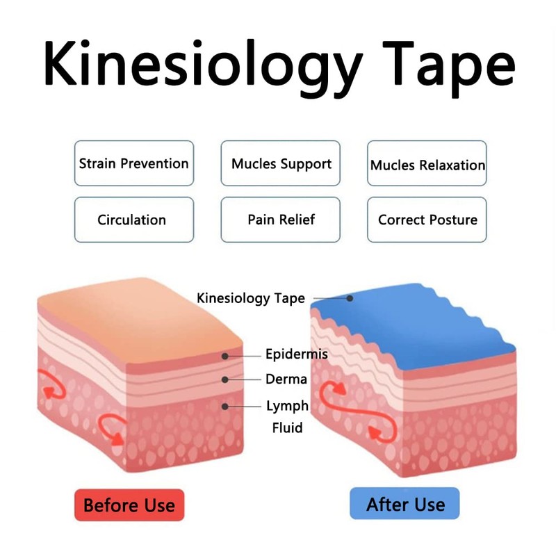 - Product specification: length: 5 m, width: 2.5 cm. Package Included:1 Roll Kinesiology Tape