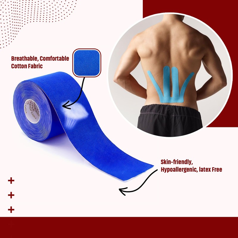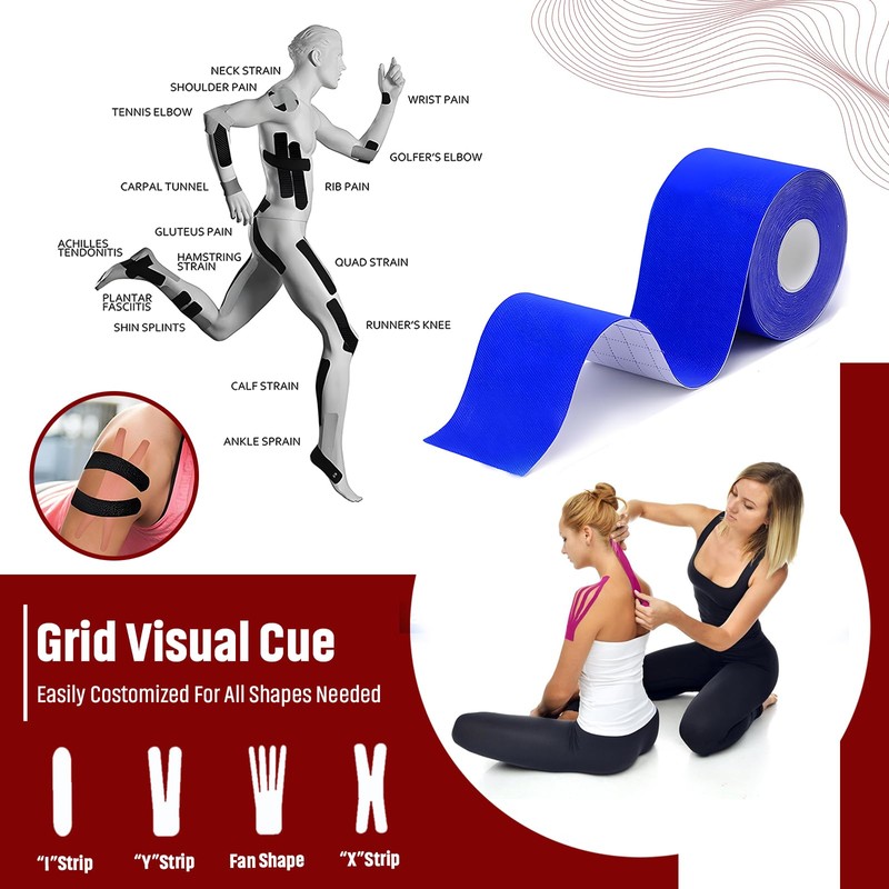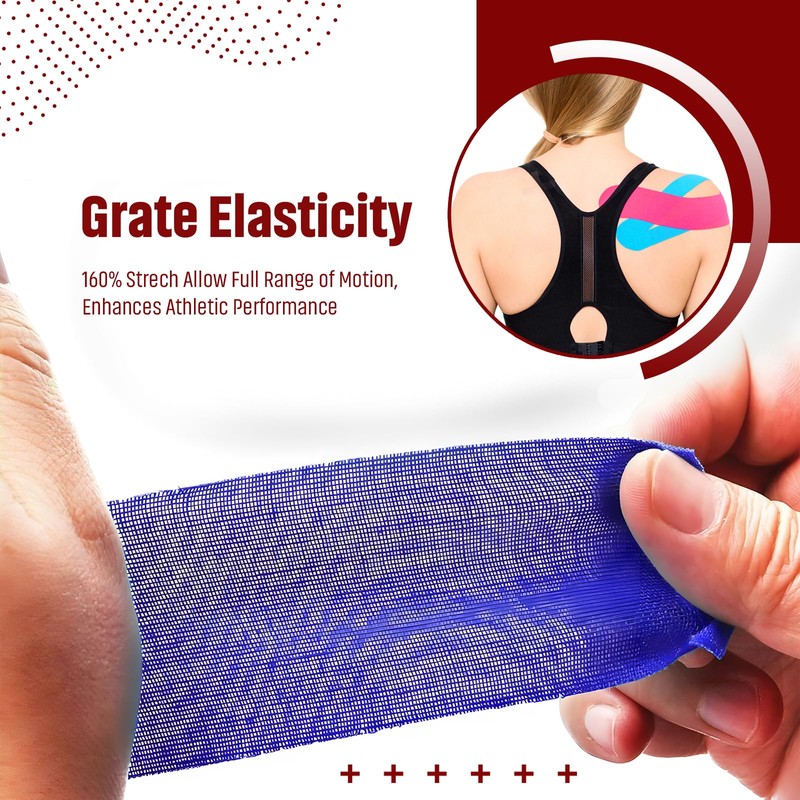 - {How it works: Kinesiology tape, which is made to adapt to your body and bend with your muscles to support rather than restrict this area, facilitates your muscles' recovery to a medium condition. Additionally, it encourages improved blood circulation, softly lifts the skin, and enhances exercise performance. They facilitate a quicker recovery from pain by supporting your muscles and lowering tissue pressure.