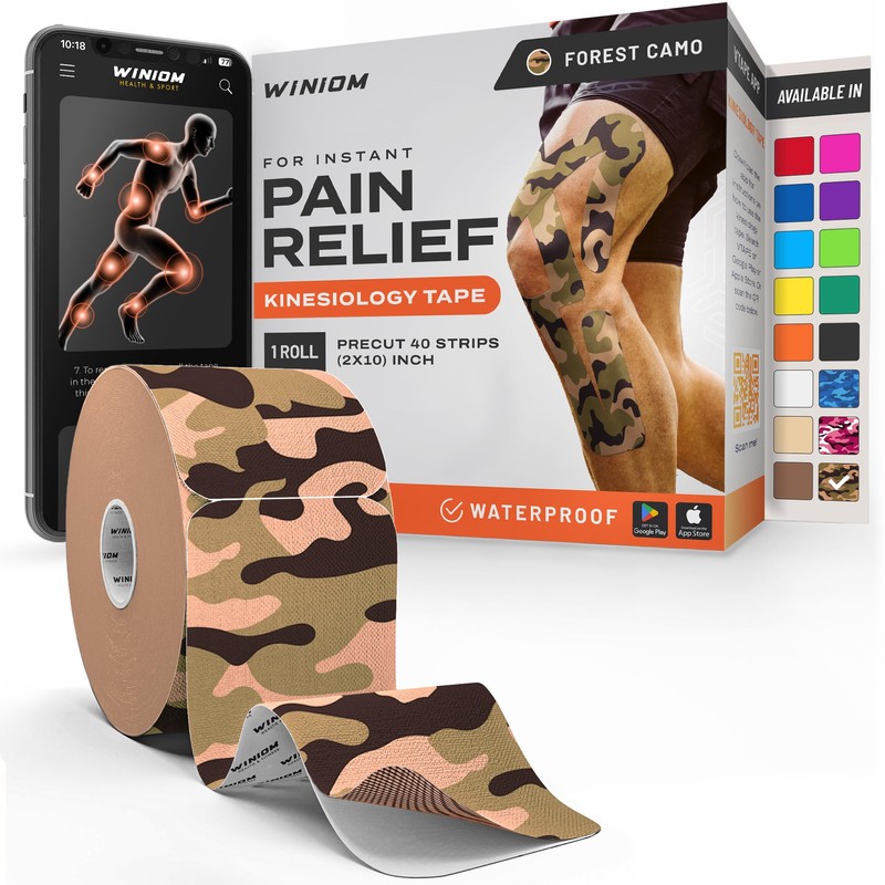 Kinesiology Tape-Incredible Support for Athletic Sports and Recovery + Free Taping Guide - Pre-Cut 2 inch 32 feet (Forest Camo + Free Taping Guide, 1 Pack)