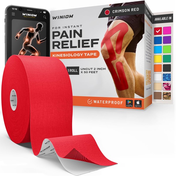 Kinesiology Tape-Incredible Support for Athletic Sports and Recovery + Free Taping Guide-Uncut 2 inch 50 feet Roll (Crimson Red + Free Taping Guide, Pack of 1)