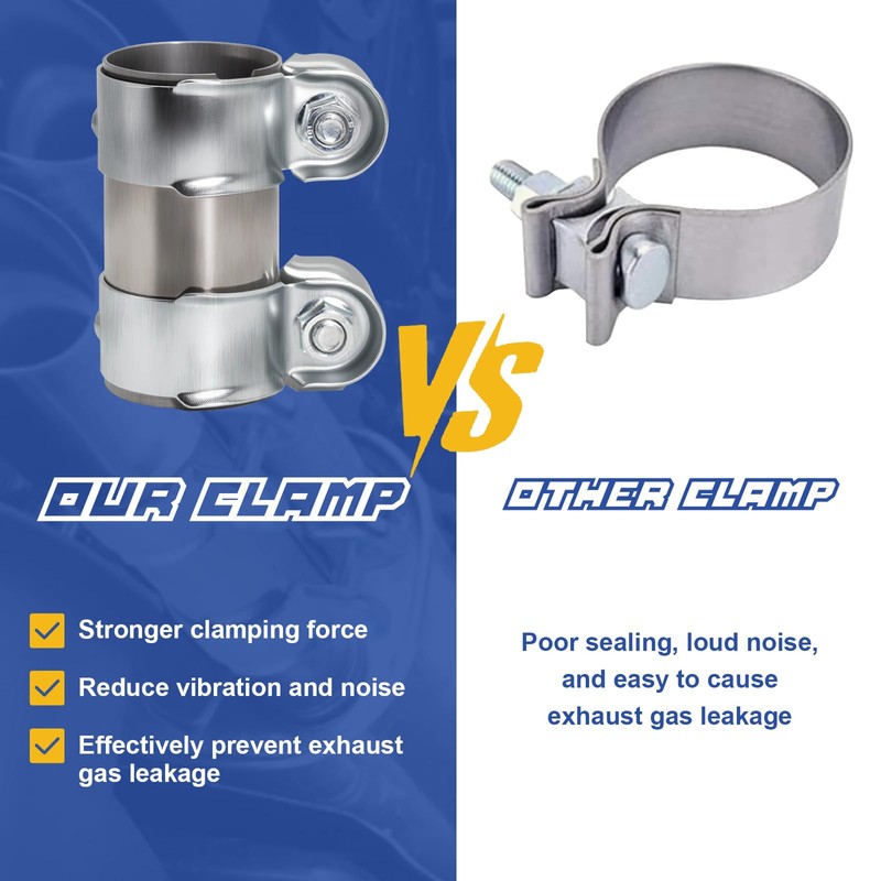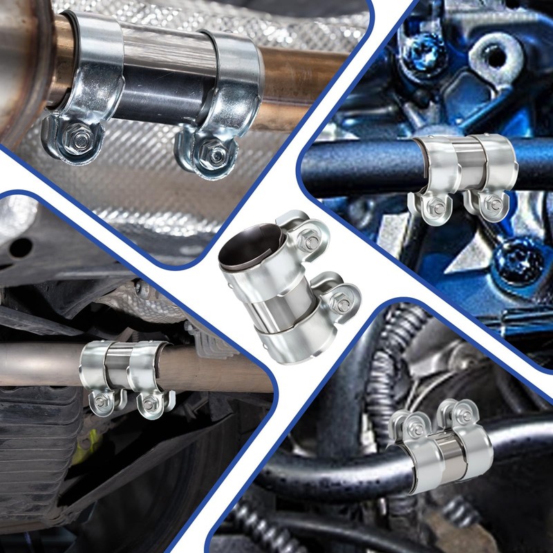 - "MULTI-PURPOSE:This stainless steel double clamp exhaust pipe clamp is compatible with a variety of devices and is commonly used in exhaust pipe systems.Includes cars, SUVs, trucks and motorcycles, inboard cruisers, boat hulls, silencers and water pipes. Exhaust systems. The strong clamping force and sealing ensure durable, stable use and improve exhaust efficiency. Exhaust clamp is ideal for exhaust repair and maintenance.