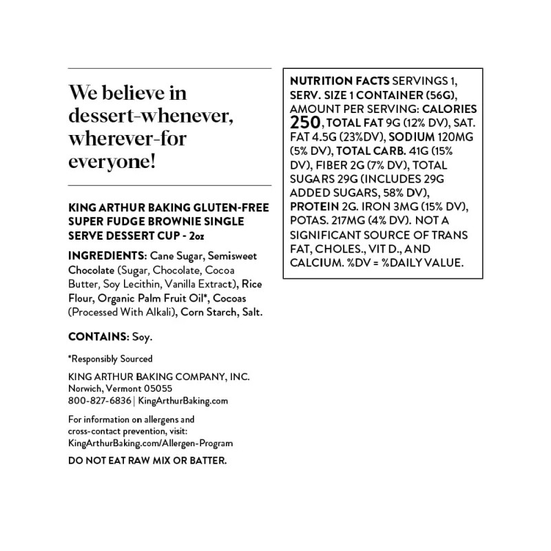King Arthur Super Fudge Brownie Mix, Single Serve, Gluten Free, 2 Ounces (Pack Of 12)