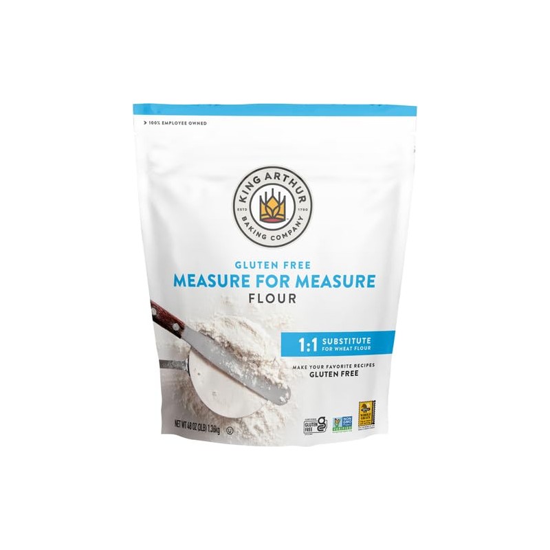 Discover the joy of gluten-free baking with King Arthur Measure for Measure Gluten-Free Flour. This versatile, all-purpose flour is the perfect 1:1 substitute for wheat flour in your favorite non-yeasted recipes. Whether you're baking cookies, cakes, muffins, or pancakes, this flour blend ensures consistent, delicious results every time. Carefully crafted and rigorously tested, our gluten-free flour is fortified with iron, calcium, and vitamin B, providing essential nutrients often missing in gluten-free diets. With 12 g of whole grains per serving, you can feel good about the wholesome goodness in every bite. This premium flour is certified gluten-free by the Gluten-Free Certification Organization (GFCO), a program of the Gluten Intolerance Group (GIG). It's also Non-GMO Project Verified and Kosher certified, meeting the highest standards of quality and safety. Packaged in a convenient 3-pound resealable bag, King Arthur Measure for Measure Flour stays fresh and is easy to store. It's an essential pantry staple for both experienced gluten-free bakers and those new to gluten-free cooking. As a 100% employee-owned company and certified B Corporation, King Arthur Baking Company is committed to using the power of business as a force for social and environmental good. With over 200 years of baking expertise, we're dedicated to delivering premium products and inspiring bakers worldwide. To use, simply substitute this flour 1:1 for all-purpose flour in your non-yeasted recipes. For best results, use in cookies, cakes, pancakes, muffins, and other recipes without yeast. While not ideal for yeasted breads, this flour excels in a wide range of other baked goods. Care instructions: Store in a cool, dry place. For maximum freshness, refrigerate after opening. Always use a dry measuring cup for accurate portioning. King Arthur Measure for Measure Gluten-Free Flour is backed by our quality guarantee, ensuring your satisfaction with every purchase.