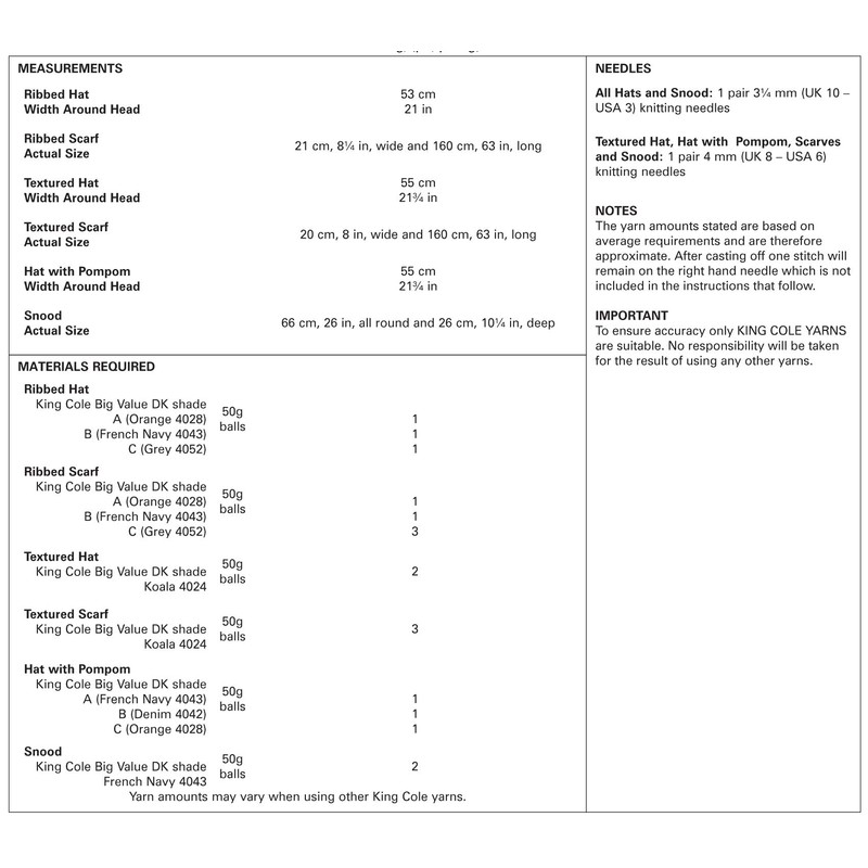 - This is a paper KNITTING PATTERN instruction leaflet and not the finished items. Knit with King Cole Big Value DK