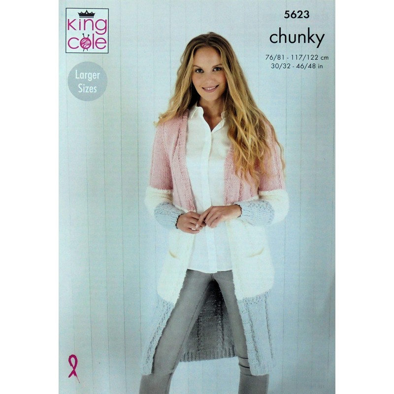 King Cole 5623 Knitting Pattern Womens Easy Knit Long Cardigans in Timesless Chunky