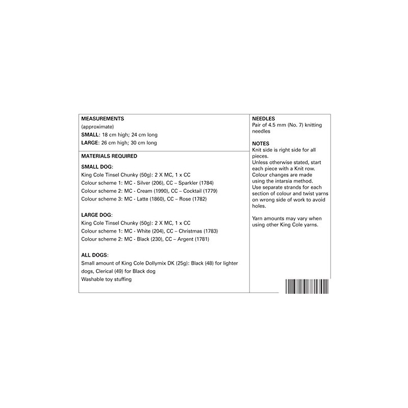 - This King Cole Tinsel Chunky knitting pattern leaflet 9056 will instruct you how to create cute westie style dogs in two different sizes.