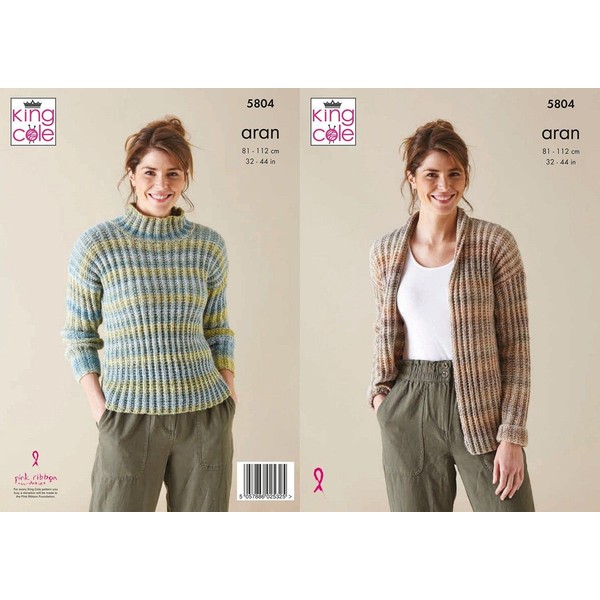 King Cole Acorn Aran Knitting Pattern - 5804 Sweater & Jacket