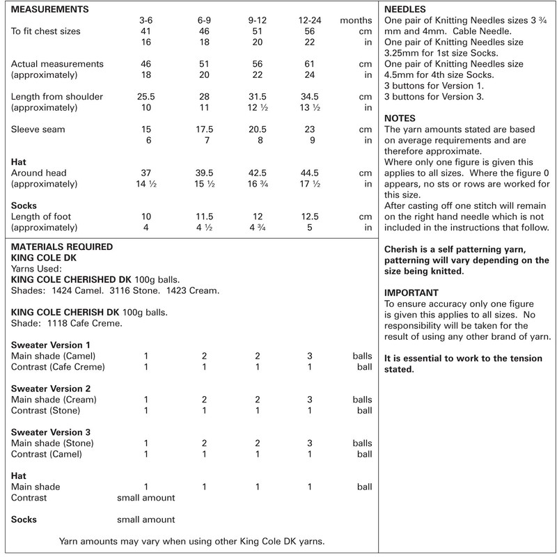 - The following designs are featured in this leaflet: Baby Sweaters, Hat and Socks. Size Information: To Fit Ages: 3 - 24 Months