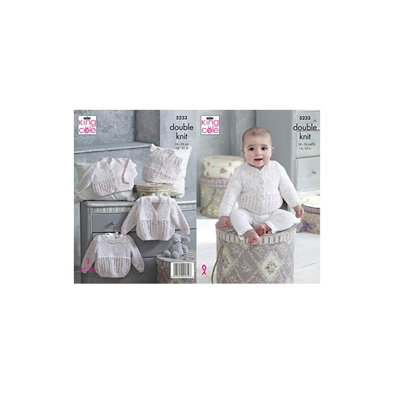 King Cole Baby Double Knitting Pattern Sweater Round or V Neck Cardigans & Waistcoat (5233)