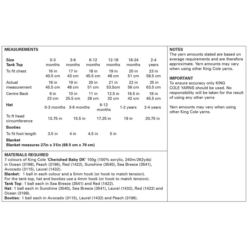 - This is a paper CROCHET PATTERN instruction leaflet and not the finished items. Crochet with King Cole Cherished Baby DK