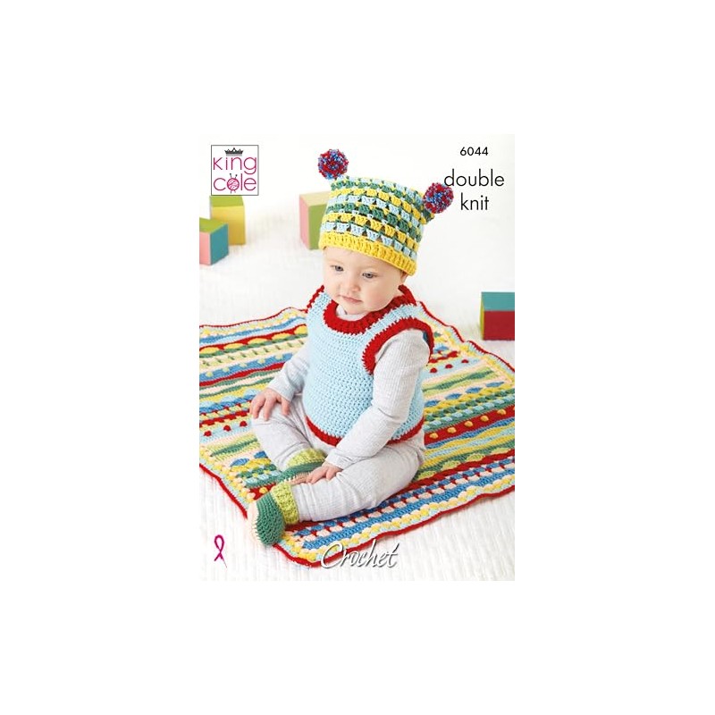 King Cole Double Knit Baby DK Crochet Pattern Tank Top Blanket Hat & Bootees (6044)
