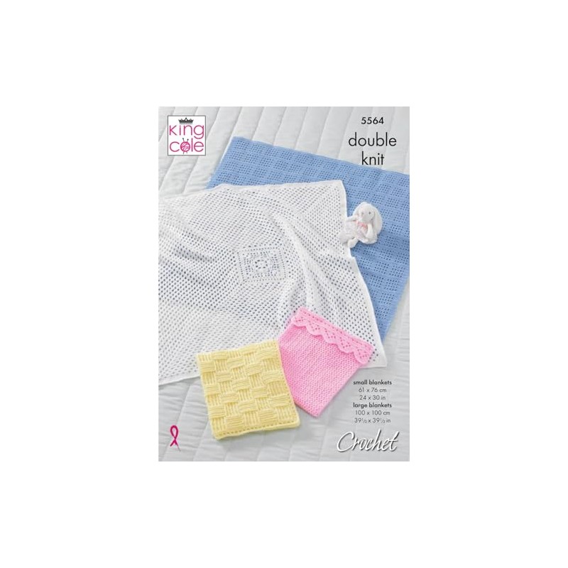 King Cole Double Knit Crochet Pattern for Large or Small Baby Blanket (5564)