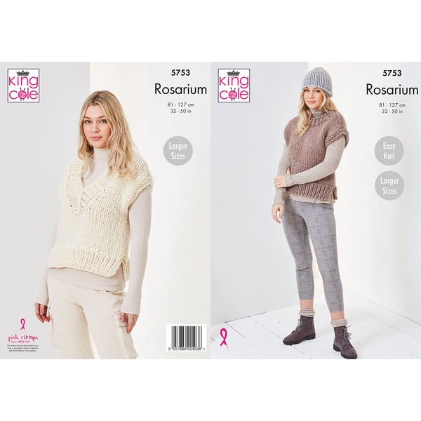King Cole Ladies Rosarium Mega Chunky Knitting Pattern Easy Knit Tank Tops & Hat (5753)