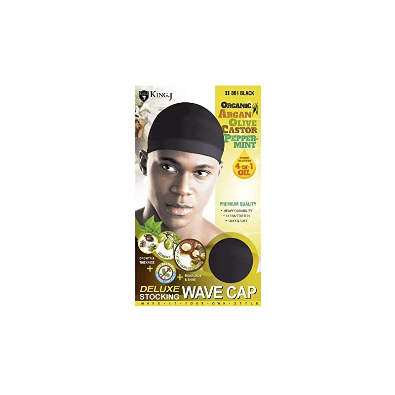 King.J Organic Deluxe Stocking Wave Cap Treated For Nutrition 4 in 1 Oil Premium Quality Heavy Durability Ultra Stretch Silky&Soft (Black-861)